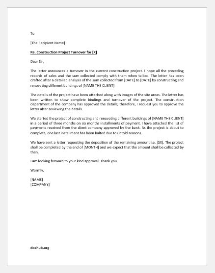 Download online SAMPLE LETTER TURNOVER CONSTRUCTION PROJECT Doc Google eBookstore